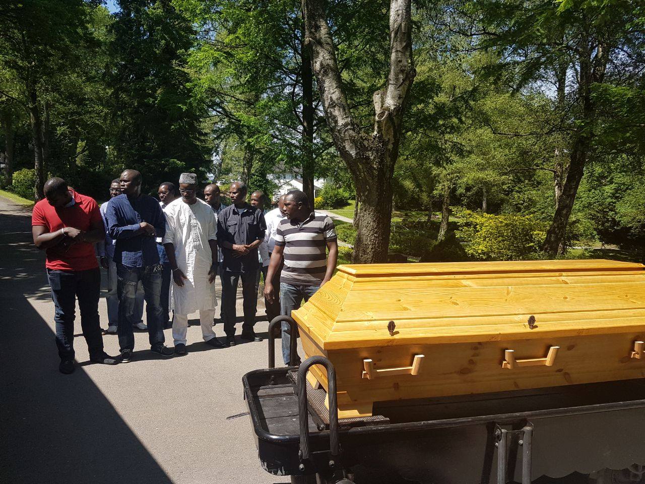 Aujourd’hui , Ibrahim Mallé communément appelé Aly Diarra âgé de 21 ans de nationalité malienne, est parti sans dire au revoir à sa famille et à ses compatriotes, mort à la suite d’une courte maladie à Wuppetal en Allemagne , La prière mortuaire fut célébrée à 14heure 10mn en présence du colonel major Mr Faguimba Ibrahima Kansaye, attaché militaire à l’ambassade du Mali à Berlin et les membres du conseil des Malien d´Allemagne (CMEA) dont a leurs tête Mr Sidiki keita Secrétaire a l ´organisation de la dite Association. il a été inhumé ce jour, le 29 mai 2017 au cimetière principal de Wuppertal. Son corps gît sous la terre à un mètre 50.